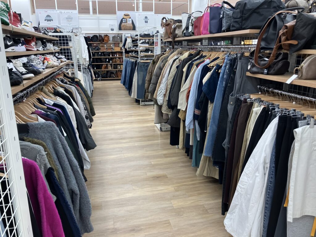 おなじみの衣類やバッグ、スニーカーのコーナーは1日では回りきれないほどのラックが並んでいます。ハイブランドからカジュアルブランド、定番からデザイナーブランド、さまざまな服飾関連商品が販売されています。