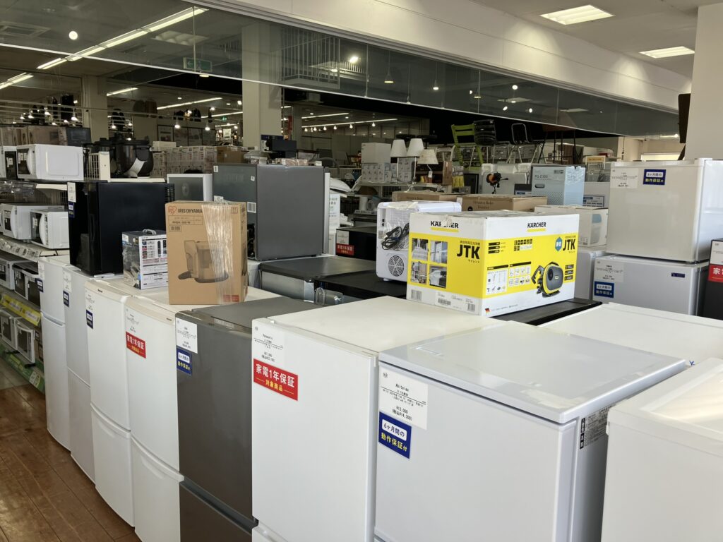 さらに、家具家電コーナーもとにかく広いスペースに、ずらりと整然と並んでいます。冷蔵庫や洗濯機、電子レンジ、掃除機といった生活に必須な家電はすべてここで揃ってしまう圧倒的な品揃えです!